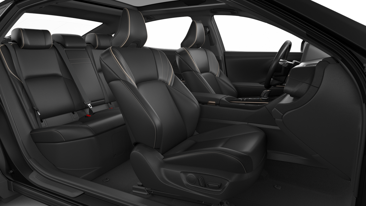 - Leather-trimmed front seats with seatback pockets; 8-way power-adjustable driver's seat with lumbar support; memory function; 8-way power-adjustable front passenger seat