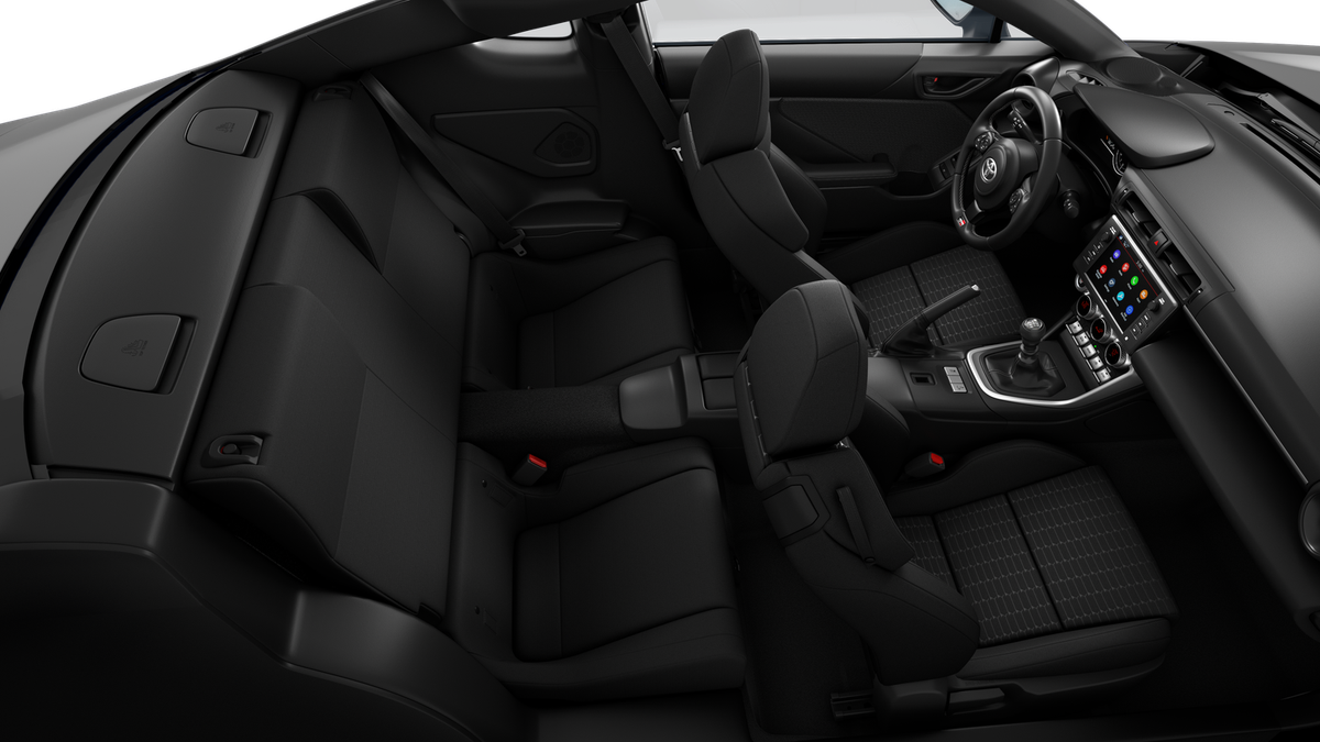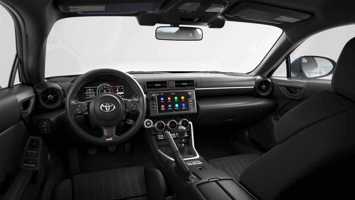 - GR86 Audio—includes 8-in. touchscreen, six speakers, Apple CarPlay® & Android Auto™ compatibility, SiriusXM® 3-month trial subscription. See toyota.com/audio-multimedia for details.